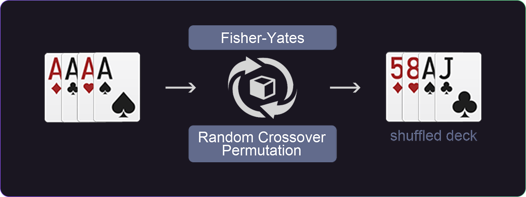 Executes 100 rounds of hybrid algorithm combining ​​Fisher Yates​​ and ​​random crossover permutation​​​​.
