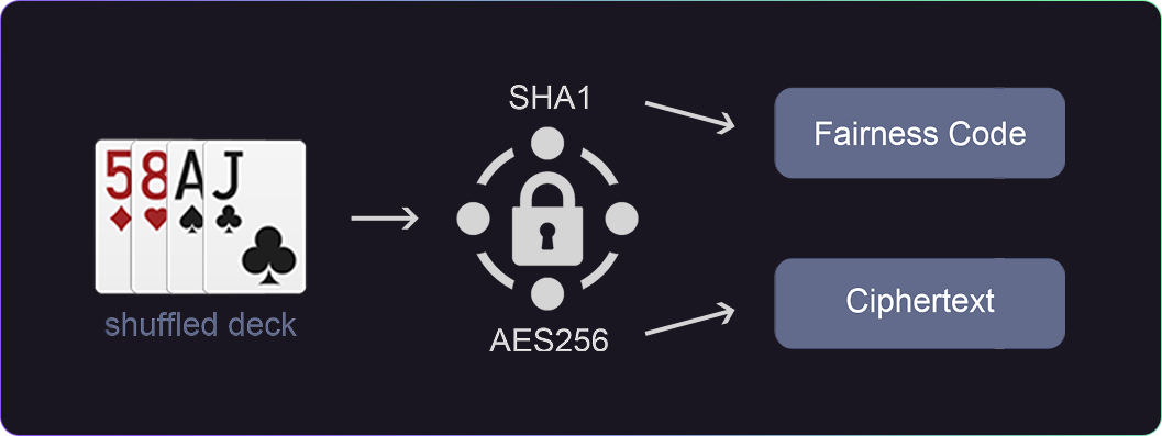 Encrypt the shuffled deck to generate a ​​Fairness Code and ​​Ciphertext​​.